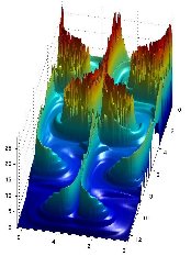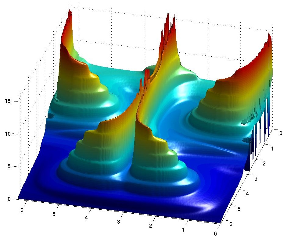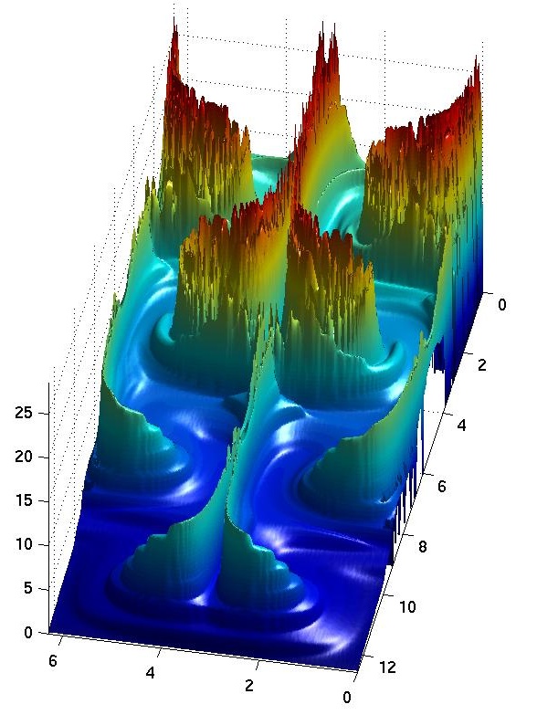Time delay function on a (280x280) grid of points, from the first, and the first two cells, respectively. |